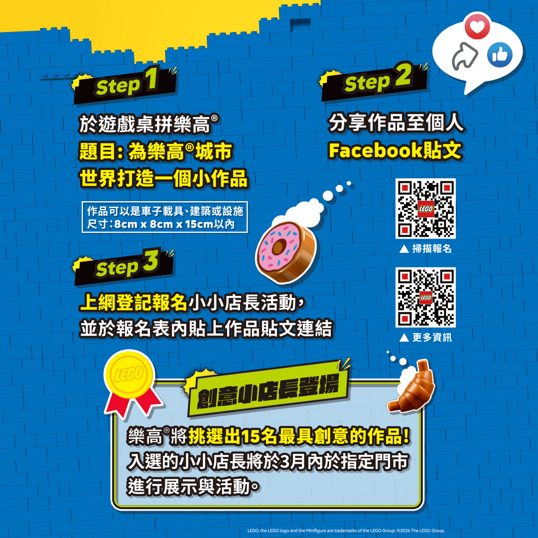 還有機會化身我們的一日小小店長接觸更多喜歡的樂高®