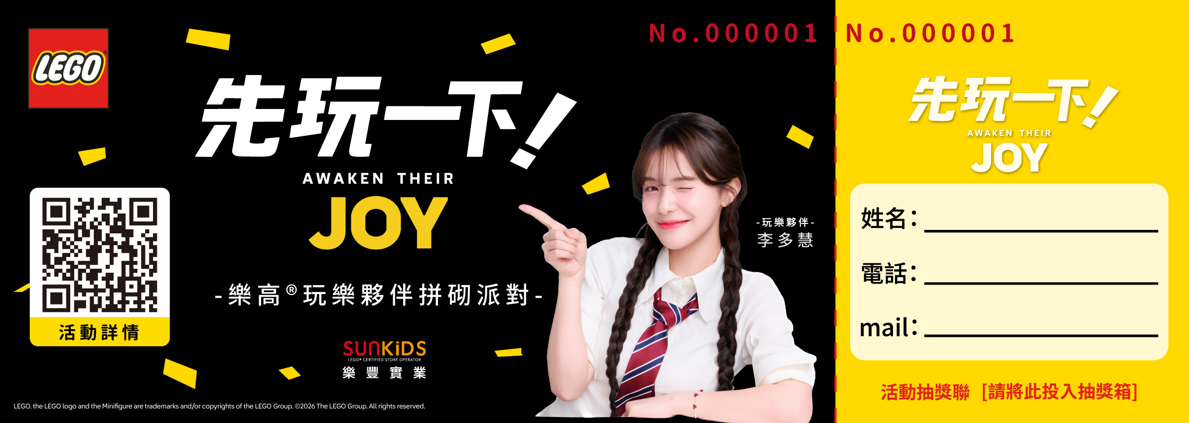 抽獎獎項: 「李多慧X樂高®玩樂夥伴拼砌派對」參加資格共30名(候補30名)