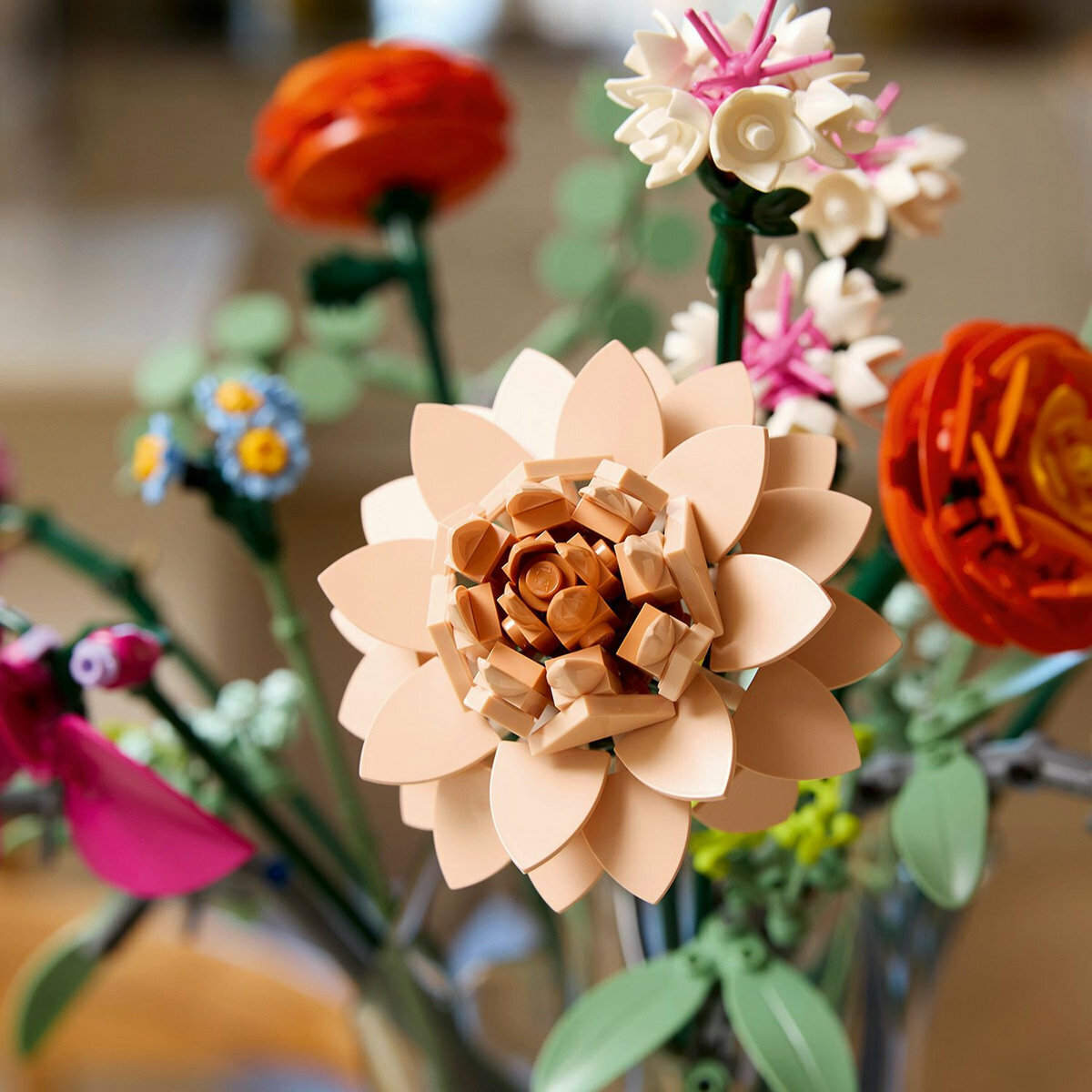花卉裝飾品-讓創意隨著樂高® 花藝優雅粉紅花束綻放。這是一款給大人的大自然主題居家飾品 DIY 拼砌組合