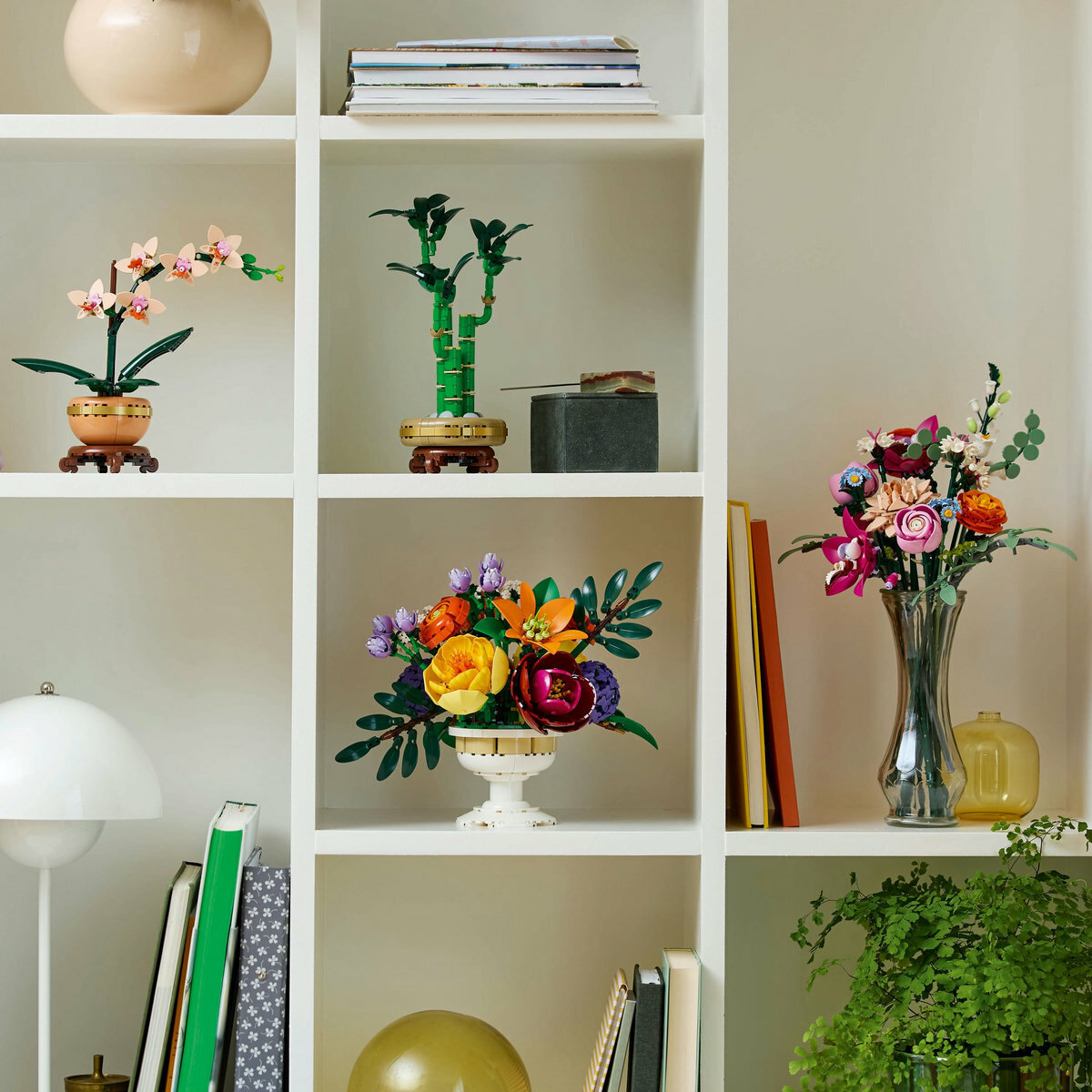 用這款樂高® 花束拼砌組合讓大自然愛好者露出笑容。這個愉快的活動讓新手花藝師製作花卉居家飾品。