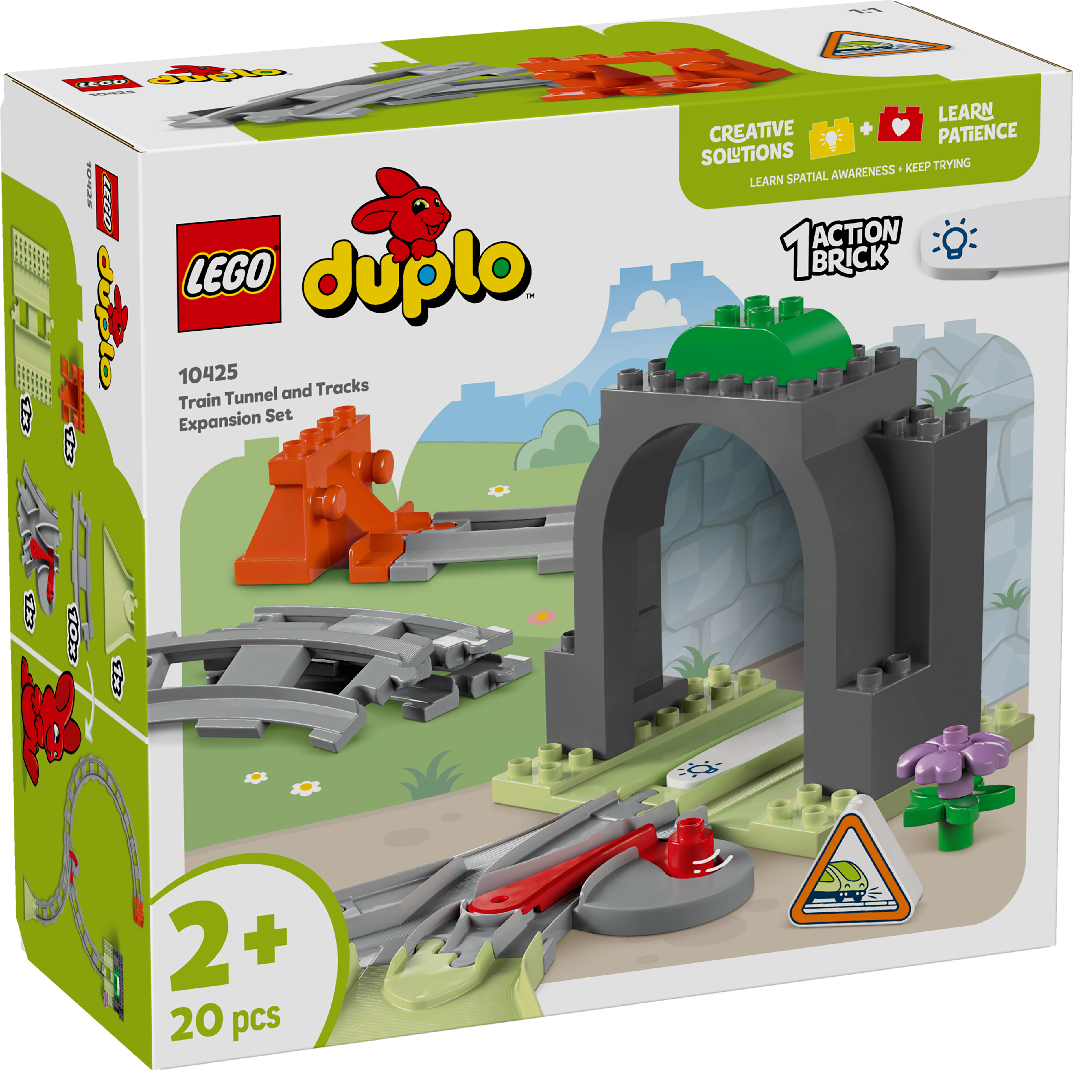 用火車隧道和軌道擴充組(10425)幼兒玩具擴展幼兒的火車冒險。2 歲以上學前兒童可為他們的樂高® 得寶® 系列小鎮主題互動式玩具火車盒組加入隧道和額外軌道。