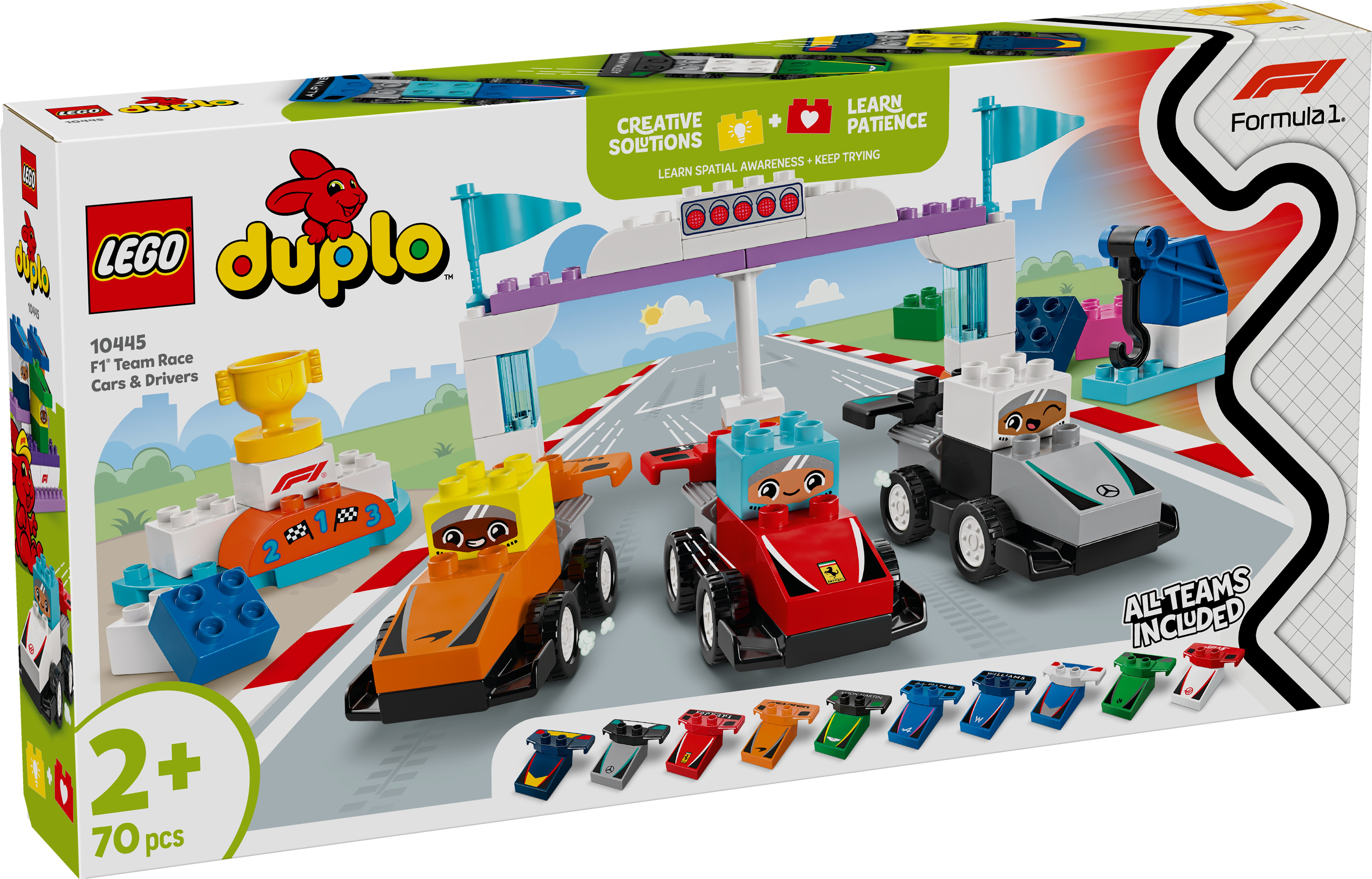 發動你的引擎,準備好用 F1® 車隊賽車和賽車手(10445)拼砌玩具盡情賽車。這個好玩的家庭活動讓粉絲與家中的小小維修站工作人員重現 Formula 1® 賽車的刺激樂趣。