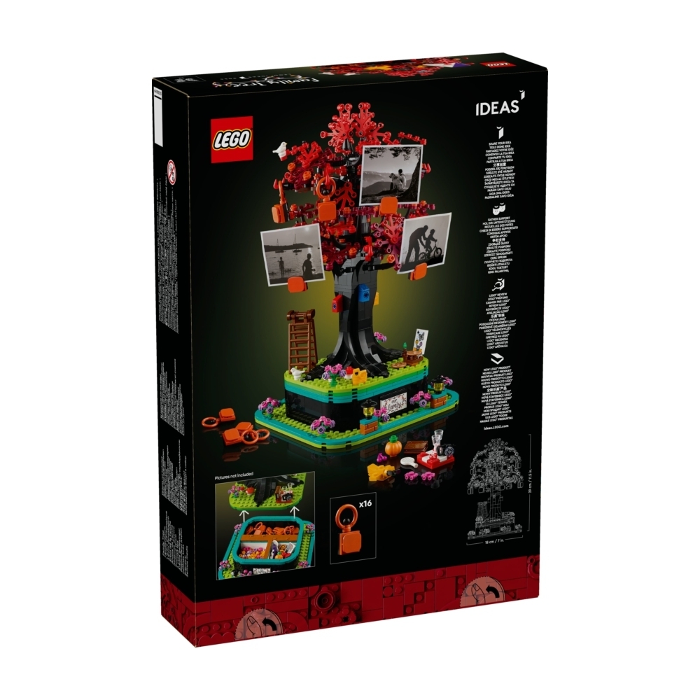 一起拼砌 LEGO® Ideas 家族樹(21346)、重溫懷舊回憶,製作獨一無二的居家飾品。此拼砌式家族樹是適合大人的美妙創意好禮,有 16 個懸掛架,可展示小型相片、訊息與其他紙質紀念物。