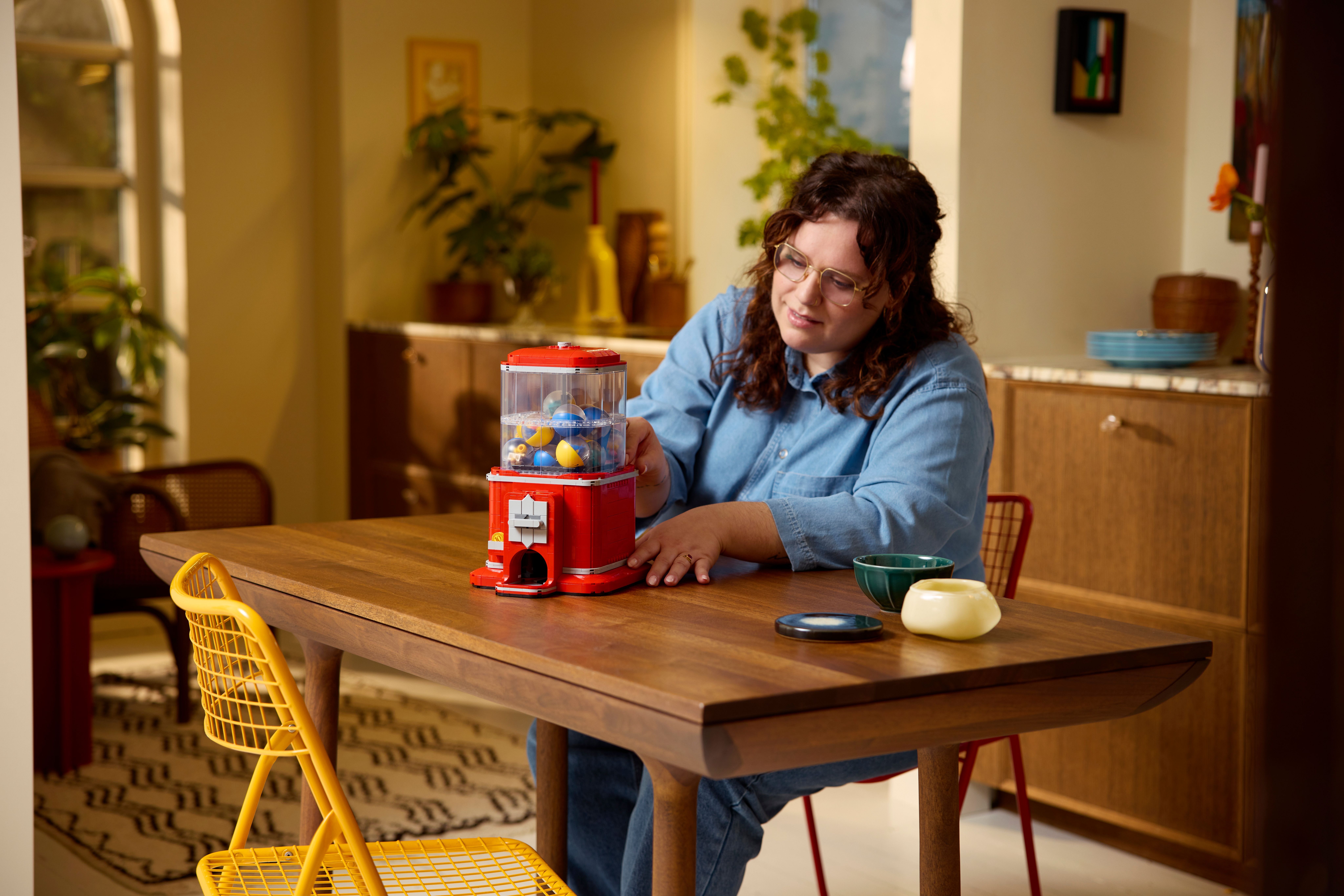 這款完全可運作的復古風格樂高® 積木版人偶扭蛋機是適合大人的絕佳懷舊贈禮。