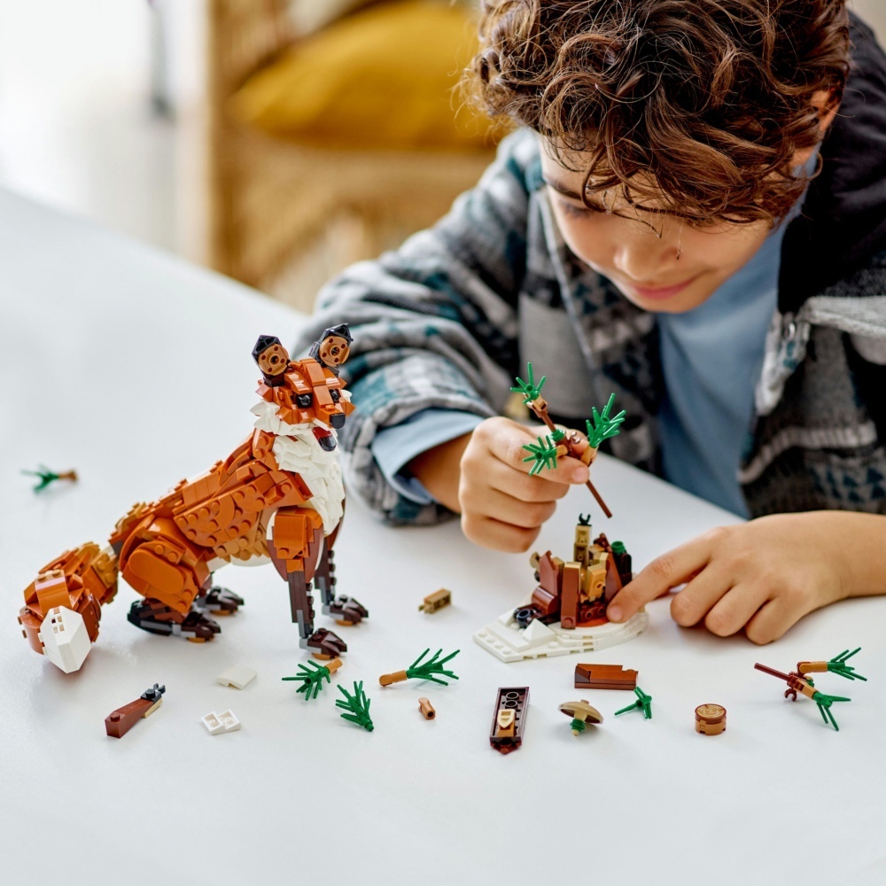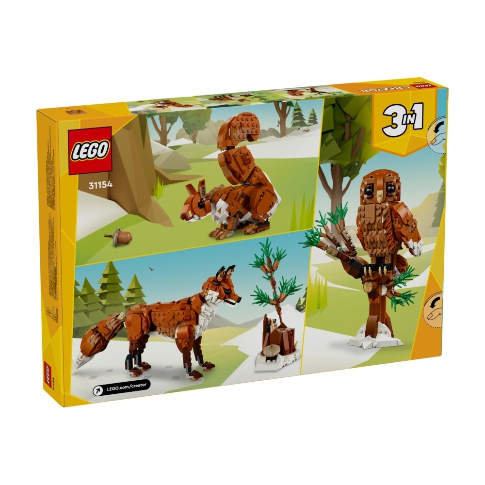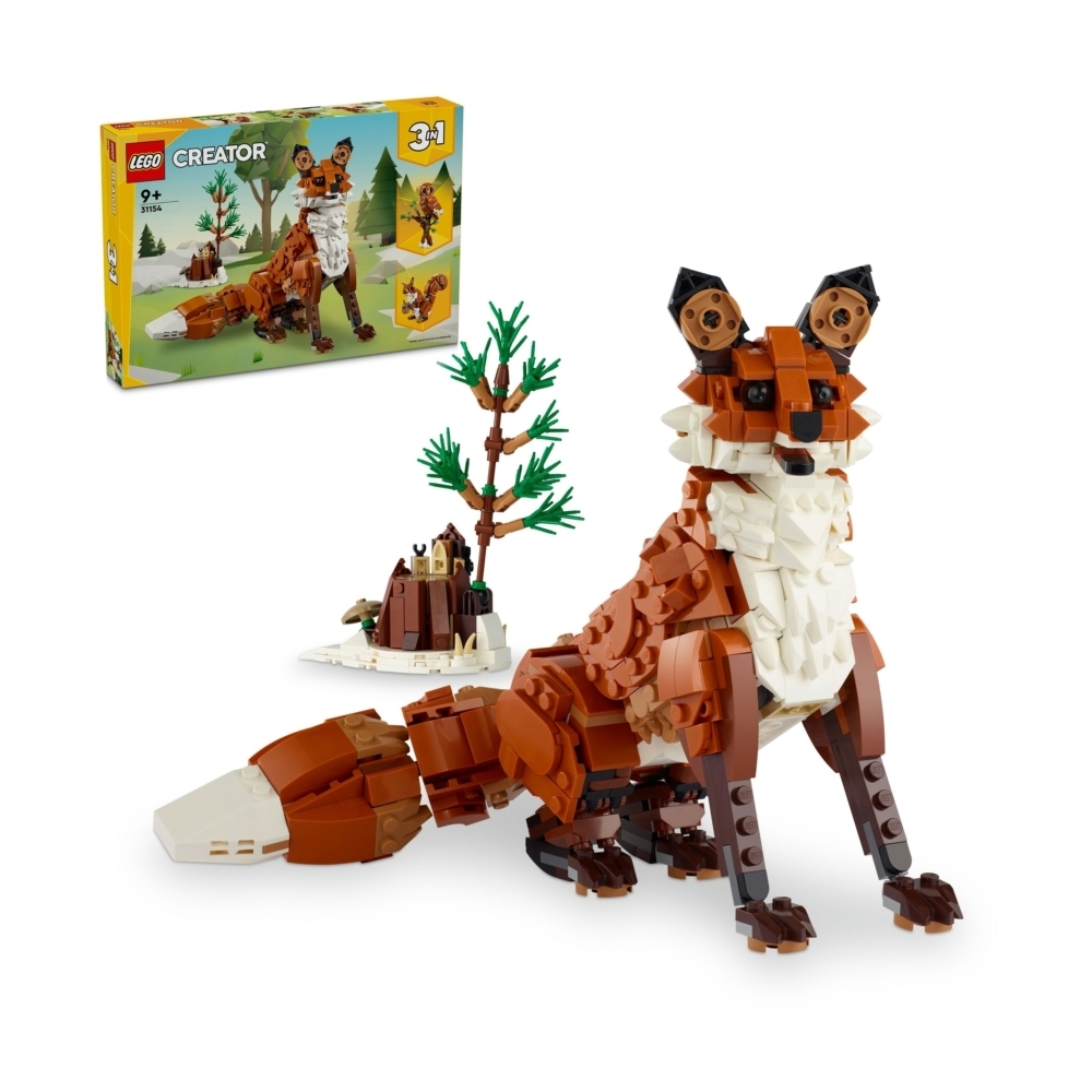 9 歲以上男孩與女孩拼砌、遊玩與展示這款 LEGO Creator 森林動物:紅狐狸(31154)3 合 1 盒組中的 3 種不同樂高® 動物玩具時,有魔幻森林冒險等著他們。此盒組內有可靈活擺動姿勢的紅狐狸玩具,頭、脖子、腿、腳掌和尾巴皆可動。紅狐狸可坐下或站立,並配有被雪覆蓋的樹樁與雲杉底座。
