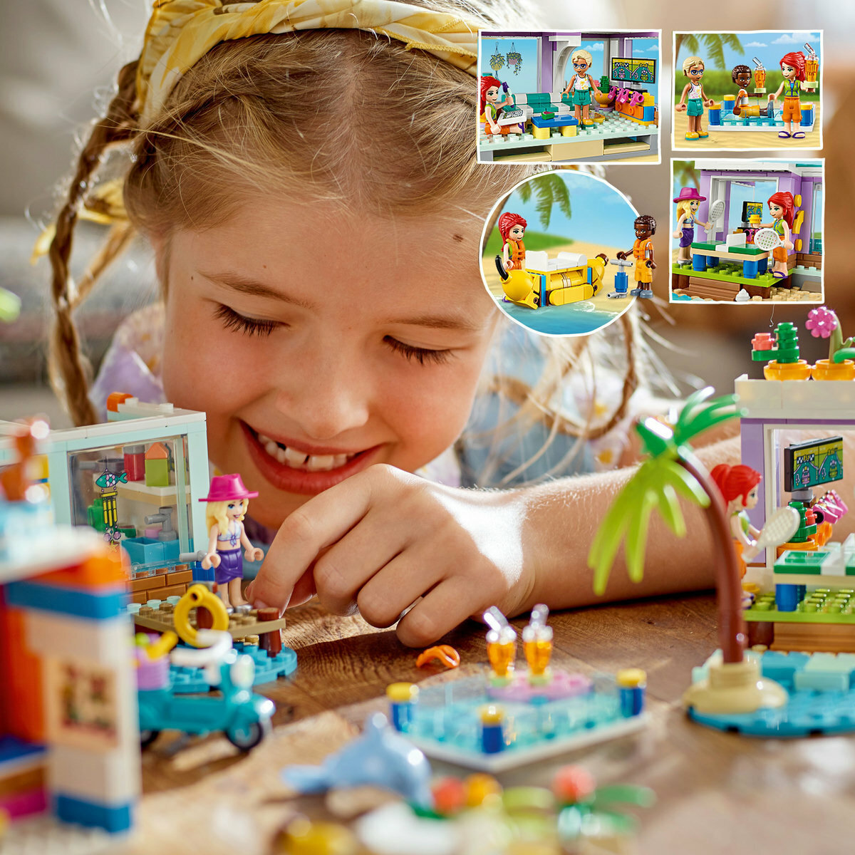 推動創意-此模組化 LEGO® Friends 海濱度假別墅(41709)盒組帶給孩子長時間的樂趣,讓他們依照喜好將模型重新配置成 2 或 3 棟獨立建築物