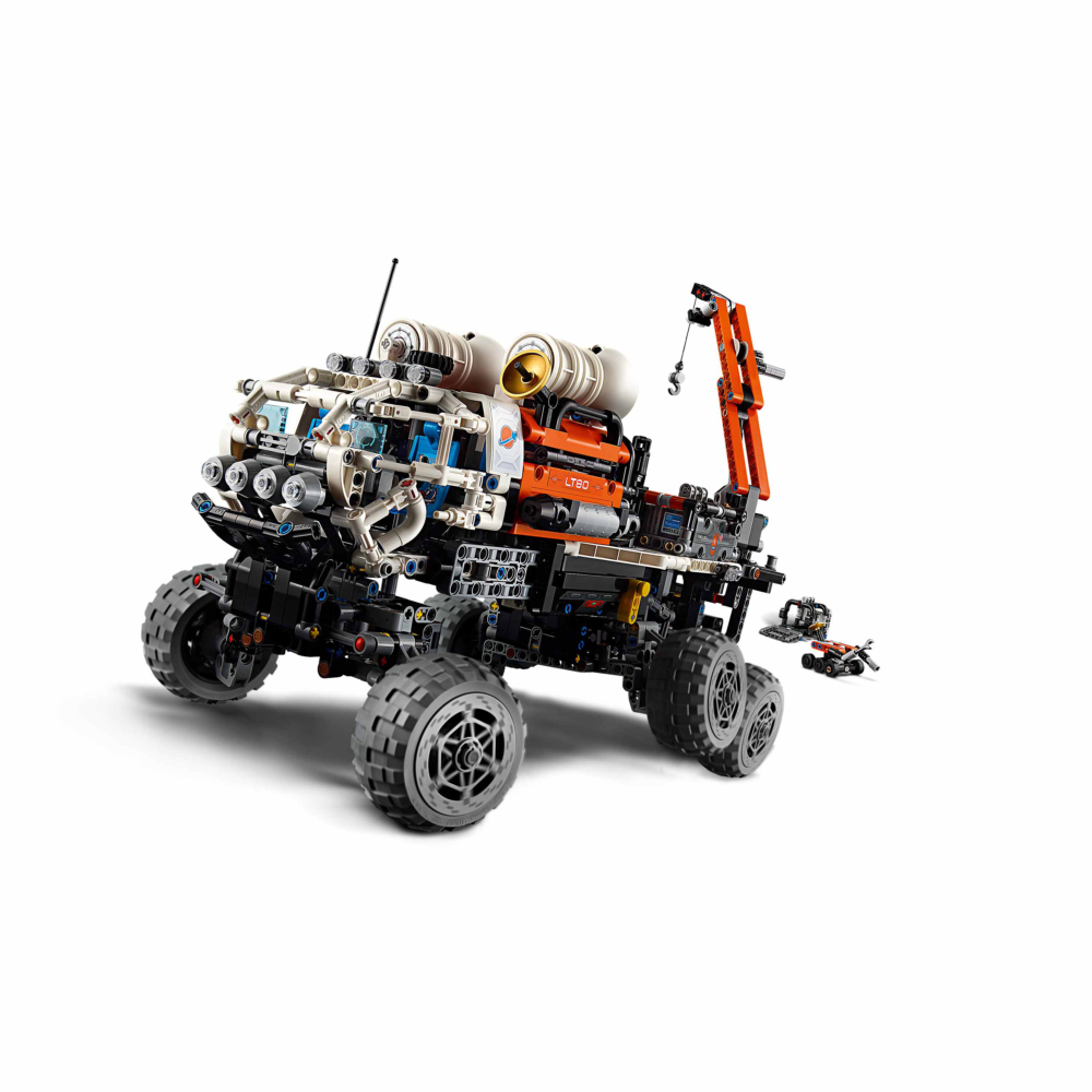 用這款樂高® 科技系列火星船員探測車(42180)盒組鼓勵孩子進一步瞭解火星任務,此盒組適合 11 歲以上、喜愛太空玩具的男孩與女孩。這款精緻的火星探測車玩具盒組有許多適合小小探險家的逼真細節。模型可展開,展開後可看到車斗,而孩子可在操控探測車就位時測試懸吊系統。接下來,他們能用起重機吊起機器人探測車、工具和燃料反應器。船員的生活區包含座椅、淋浴器、馬桶、跑步機與冰箱。裡面還有電梯功能,以及回收桶與樣本容器、氣瓶和水罐。