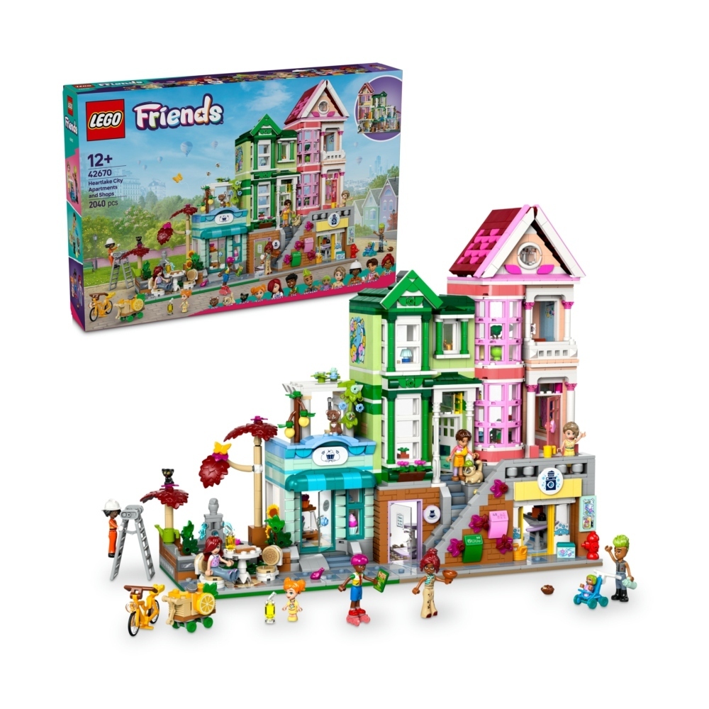 透過 LEGO® Friends 心湖城公寓和商店(42670)拼砌式玩具探索充滿社區精神的模型組合。此盒組是一款好禮,適合 12 歲以上孩子,包含 3 間色彩繽紛的樂高房屋、烘焙坊、陶藝工作室、自助洗衣店等等。