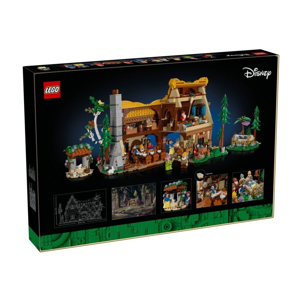 用這款精緻的樂高® 迪士尼《白雪公主》小屋(43242)展示模型分享你對經典迪士尼電影的熱情。這款值得收藏、給大人的拼砌組合有可打開的小屋,包含睡覺區、用餐區、音樂區與廚房,廚房壁爐有 1 個發光積木(內附電池),增添光采。屋頂一側也可拆卸,更便於進入,此外還有小型拼砌式許願井和包含玻璃棺材的森林場景。此盒組內有 10 個知名的《白雪公主》角色:白雪公主、喬裝的邪惡皇后、王子、萬事通、小迷糊、羞羞、氣寶、開心果、睡寶與噴嚏蟲,以及 6 個樂高迪士尼動物玩偶。