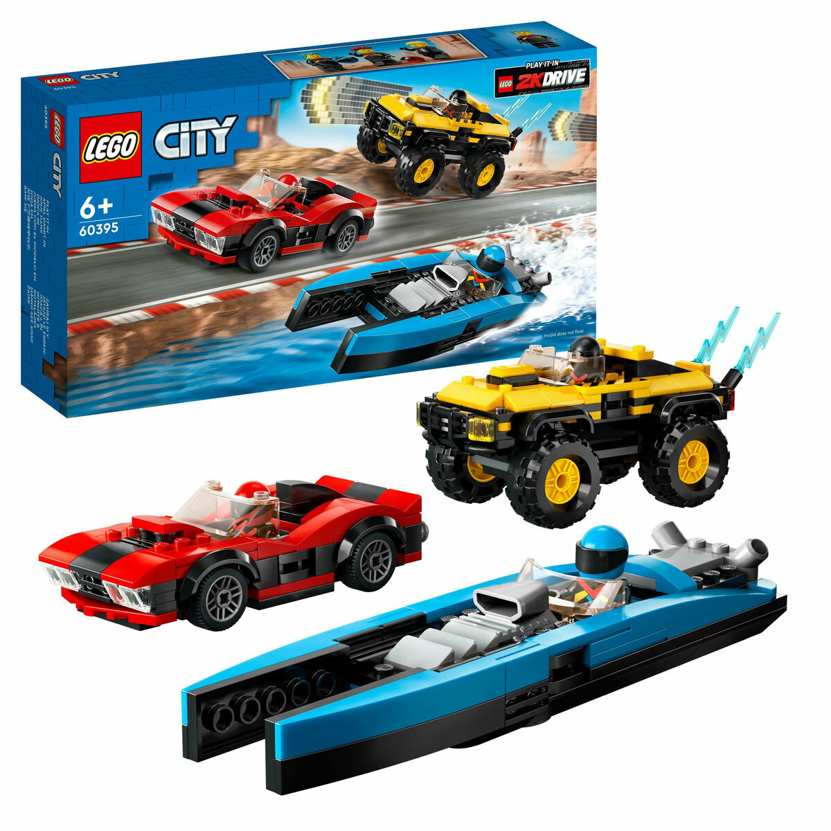 3 種競速交通工具組合包-孩子可用這款樂高城市綜合競速組合包(60395)盒組,玩出實作版《LEGO® 2KDRIVE》電動遊戲樂趣,或上演自己的比賽