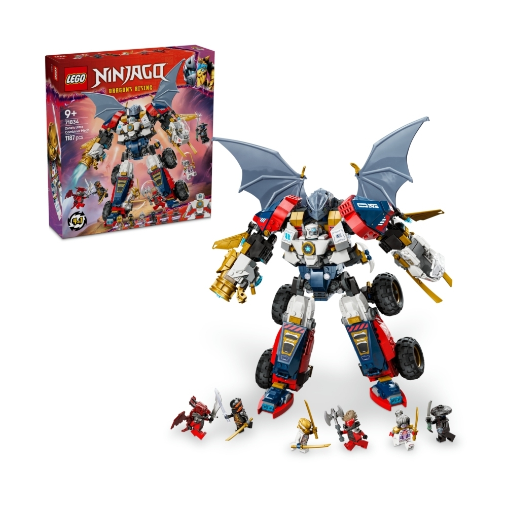 在這款有 6 隻人偶的樂高® 旋風忍者® 4 合 1 拼砌盒組中,忍者迷可遊玩大型機械人,或將機械人拆成噴射機、汽車、龍和可動玩偶。