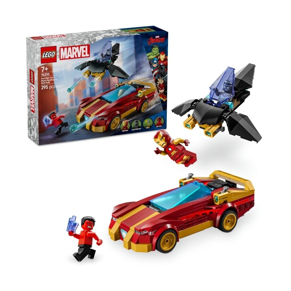 LEGO® Marvel 鋼鐵人汽車和黑豹大戰紅浩克是一款高品質拼砌式玩具,以酷炫交通工具和經典人偶帶來超級英雄樂趣。