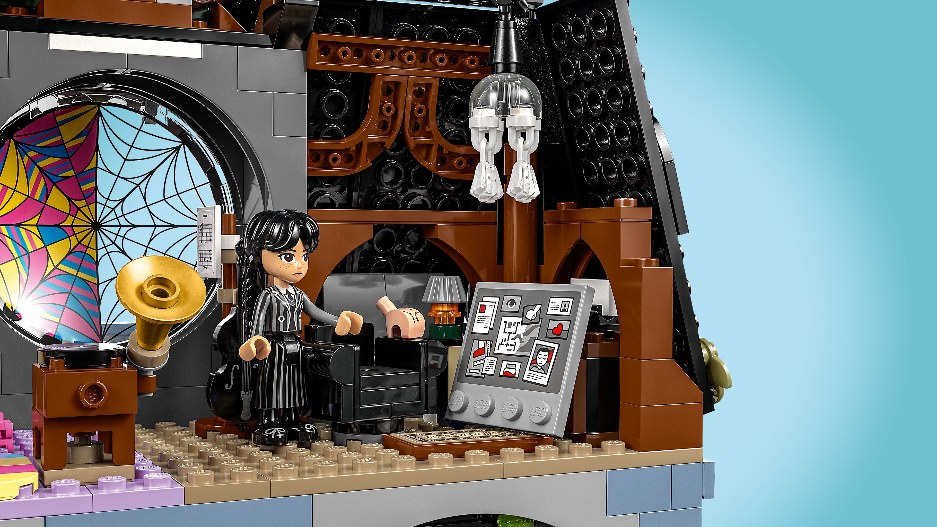 用這款懸疑推理冒險盒組禮品讓《星期三》粉絲興奮不已,包括窗戶可打開的宿舍房間、4 個樂高娃娃、小手等等。
