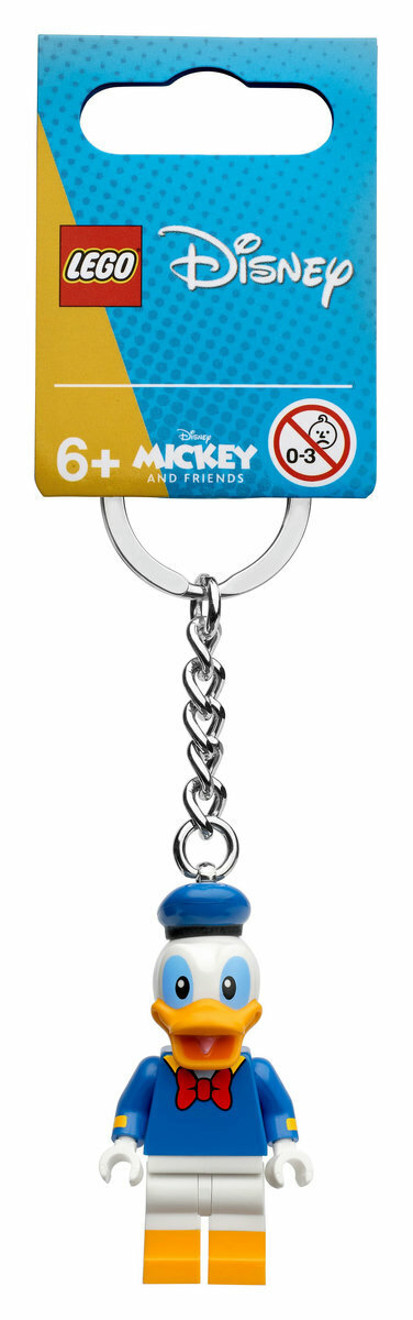 用酷炫的 LEGO®|Disney 唐老鴨鑰匙圈讓迪士尼卡通的粉絲興奮不已。唐老鴨人偶連接著耐用金屬環與鏈子,可牢固地固定到背包、提袋或鑰匙上。人偶無法從金屬鏈拆卸。