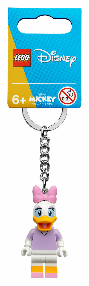 用 LEGO®|Disney 黛絲鑰匙圈讓迪士尼卡通的粉絲開心不已。黛絲人偶連接著耐用金屬環與鏈子,可牢固地固定到背包、提袋或鑰匙上。人偶無法從金屬鏈拆卸。